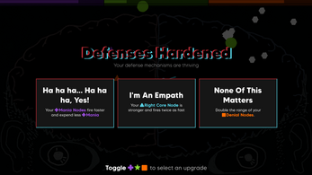 Defense Mechanisms expend psychological resources when toggled on. Resources recover when toggled off.